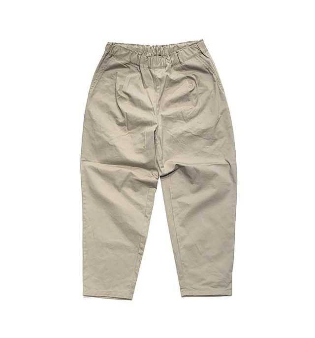 16番単糸のコーマ糸を用いたチノクロスを使用。ハリ、コシのあるしっかりとした生地感ながらも、洗いをかけて柔らかな風合いに仕上がっています。ヒップとモモにゆとりを持たせ、裾に向かってテーパードしたシルエット。コーディネートしやすく長いシーズン活躍する一本です。ウエストはゴムとヒモで調節できます。 【品番】 R47601 【カラー】 03(ベージュ) ※ できる限り実際の商品の色に近くなるよう調整していますが、撮影時の条件、ブラウザやモニターの環境などにより色合いが異なることがございます。ご了承ください。 【プライス】 17,600円(税込) 【素材】 綿 100% 【サイズ】 2 ウエスト:約76~92㎝ 股上:約30㎝ 股下:約68㎝ ワタリ:約35㎝ 裾幅:約18㎝ 3 ウエスト:約80~96㎝ 股上:約31㎝ 股下:約70㎝ ワタリ:約36㎝ 裾幅:約19㎝ ※誤差があります。 数値は目安としてお考えください。
