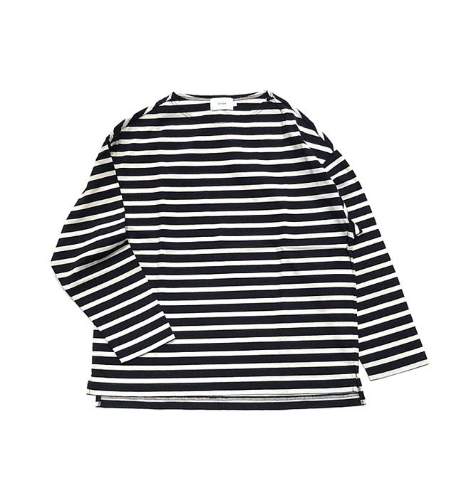 16番単糸を使用した程よい厚みの天竺ボーダーTシャツ。適度な張り感があり、ドライな肌触りの素材です。オーバーサイズのシルエットで体のラインを拾わず、開きすぎないボートネックが首もとをすっきりと見せてくれます。シンプルで着回しもしやすく秋口から大活躍間違いなし。ユニセックスサイズで1~3のサイズ展開です。 【品番】 R17403 【カラー】 10(クロベース×生成ボーダー) 02(生成ベース×ネイビーボーダー) ※ 掲載商品は出来るだけ現物と同じになるよう撮影しておりますが、ディスプレイの性質上、実際の色と異なって見える場合がございますので予めご了承ください。 【プライス】 8,250円(税込) 【素材】 綿 100% 【サイズ】 1 肩幅:約53cm 後着丈:約65cm 身幅:約55cm 袖丈:約48cm 2 肩幅:約55cm 後着丈:約70cm 身幅:約57cm 袖丈:約53cm 3 肩幅:約57cm 後着丈:約72cm 身幅:約59cm 袖丈:約55cm ※誤差があります。 数値は目安としてお考えください。