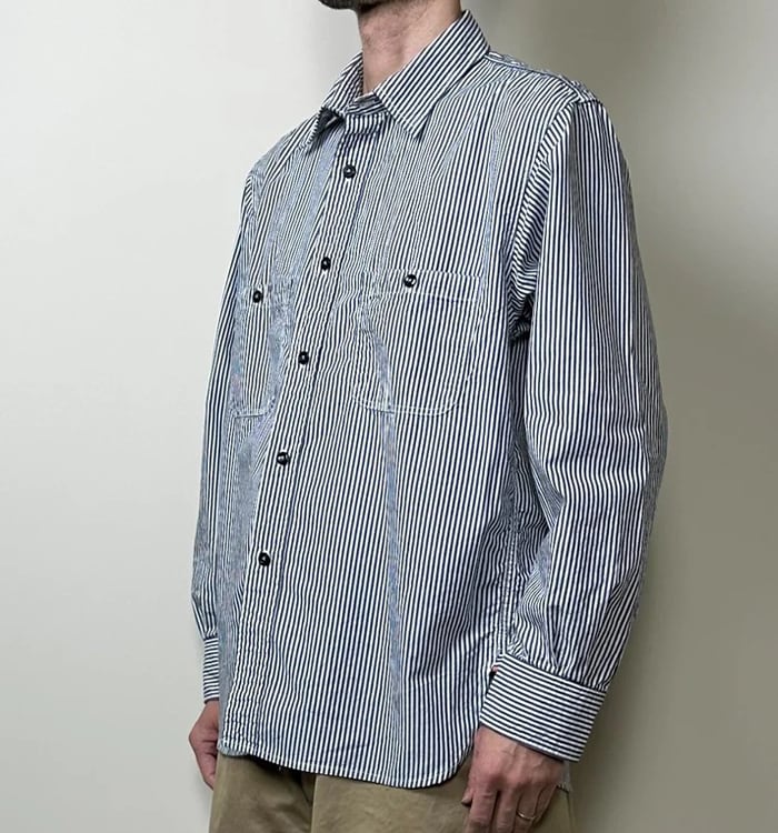 【OMNIGOD/56-0408X】ストライプセルヴィッジブロード ワークシャツⅢ