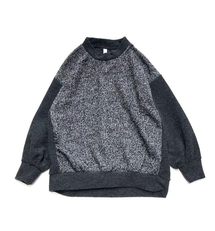 フロントはツイード生地で切り替え、シンプルな中に存在感をプラス。ゆったりとしたサイジングに、前後差をつけたシルエットで動きやすさとバランスを両立。少しボリュームを持たせた袖も女性らしいポイントになっています。