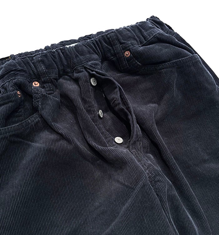 シルエットは“36インチのヴィンテージデニムを履いたような”迫力をコンセプトにデザイン。深めの股上とゆったりとしたウエストが生み出すボリューム感が魅力です。ウエストにはゴムとドローコードを採用し、快適なフィット感を実現。ウエストサイズはワンサイズ展開で、レングスを選ぶことで好みの穿き方が楽しめます。上品なアイテムを合わせて、大人の余裕を感じさせるルーズスタイルをぜひお楽しみください。