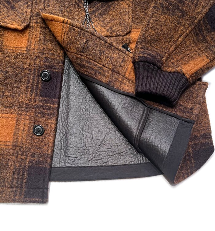 裏面にはフィルムをラミネート加工することで、高い防風性を実現。冷たい風をしっかりとブロックし、保温性にも優れています。リブ部分にもウール混素材を使用し、心地よいフィット感と快適な着用感を両立しています。