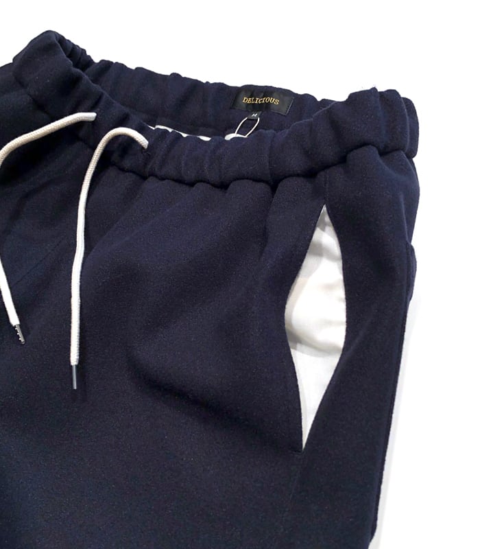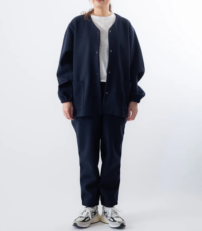 コートなどにも使われるメルトンのようなウォーム感を持つ、表情豊かなニット素材を使用。見た目にも上品な質感ながら、軽くてやわらかく、ナチュラルストレッチがきいた快適な穿き心地が魅力です。