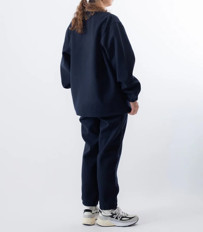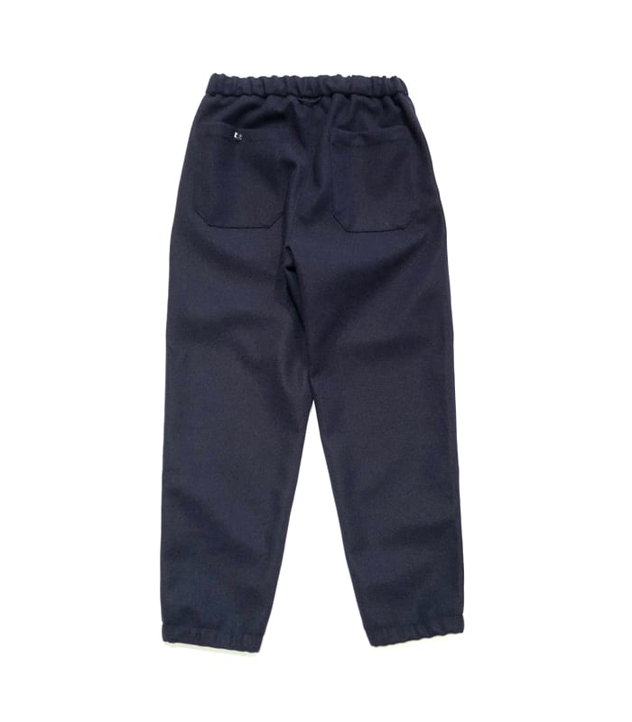 ゆったりとしたリラックスシルエットで、リラックス感ときちんと感を両立。ウエストはゴム+ドローコード仕様で調整がしやすく、裾にもゴムを入れて軽快な印象に仕上げています。軽やかで暖かく、秋冬のデイリーウェアとしても快適に着用できる一本です。