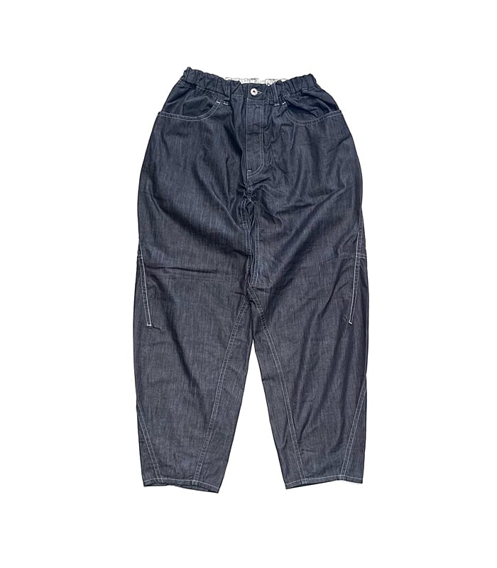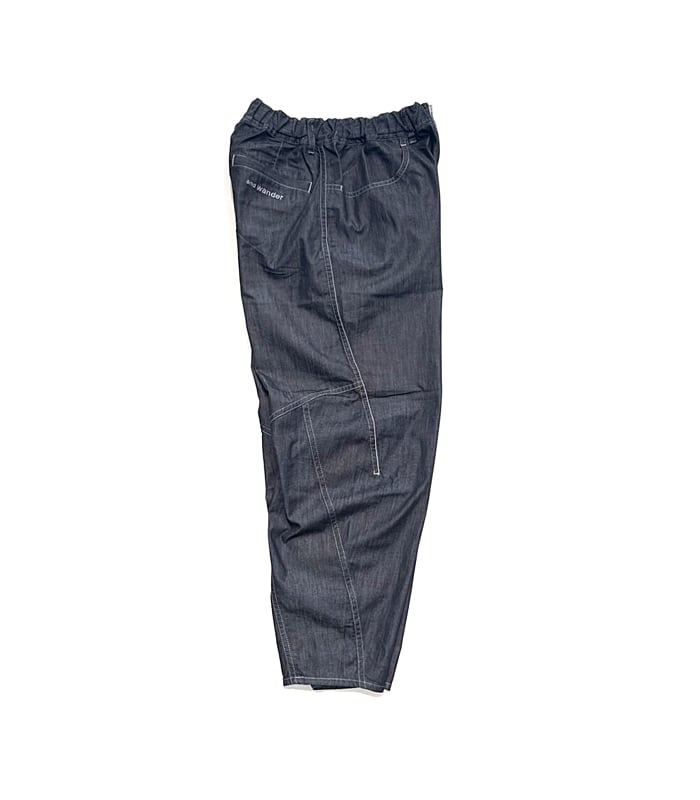 リラックス感のあるシルエットながら、素材と複雑なパターンでand wanderらしい機能美をさりげなく感じさせ、街着としても使いやすいデニムパンツです。