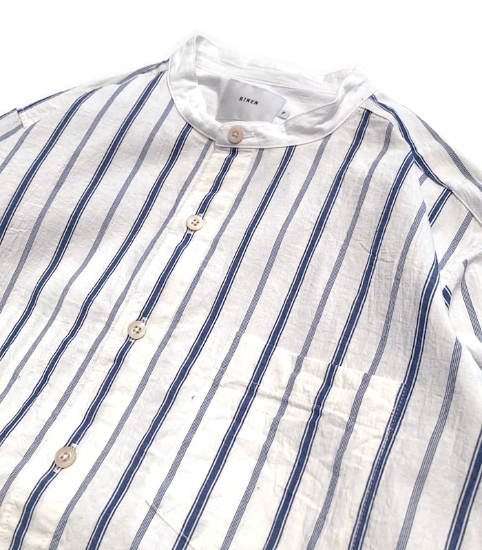 【RINEN/R39602】オーガニックストライプクレリックスタンドカラーシャツ(unisex)